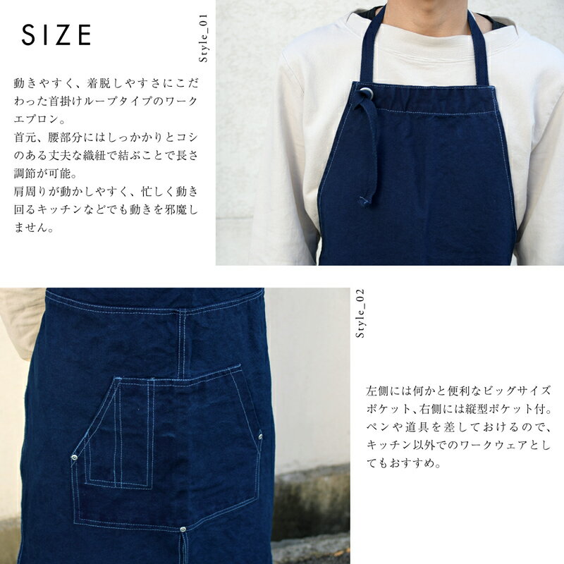 藍染め キャンバス エプロン ワークエプロン コットン 綿 ループエプロン メンズ レディース