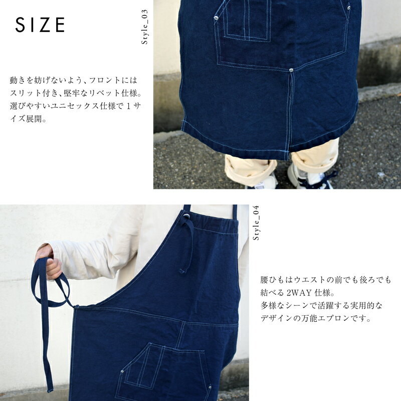 商品説明 12OZある厚手でしっかりとしたコットンキャンバス生地の藍染めエプロン。