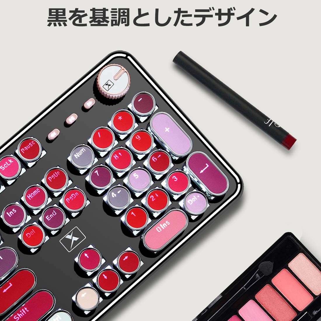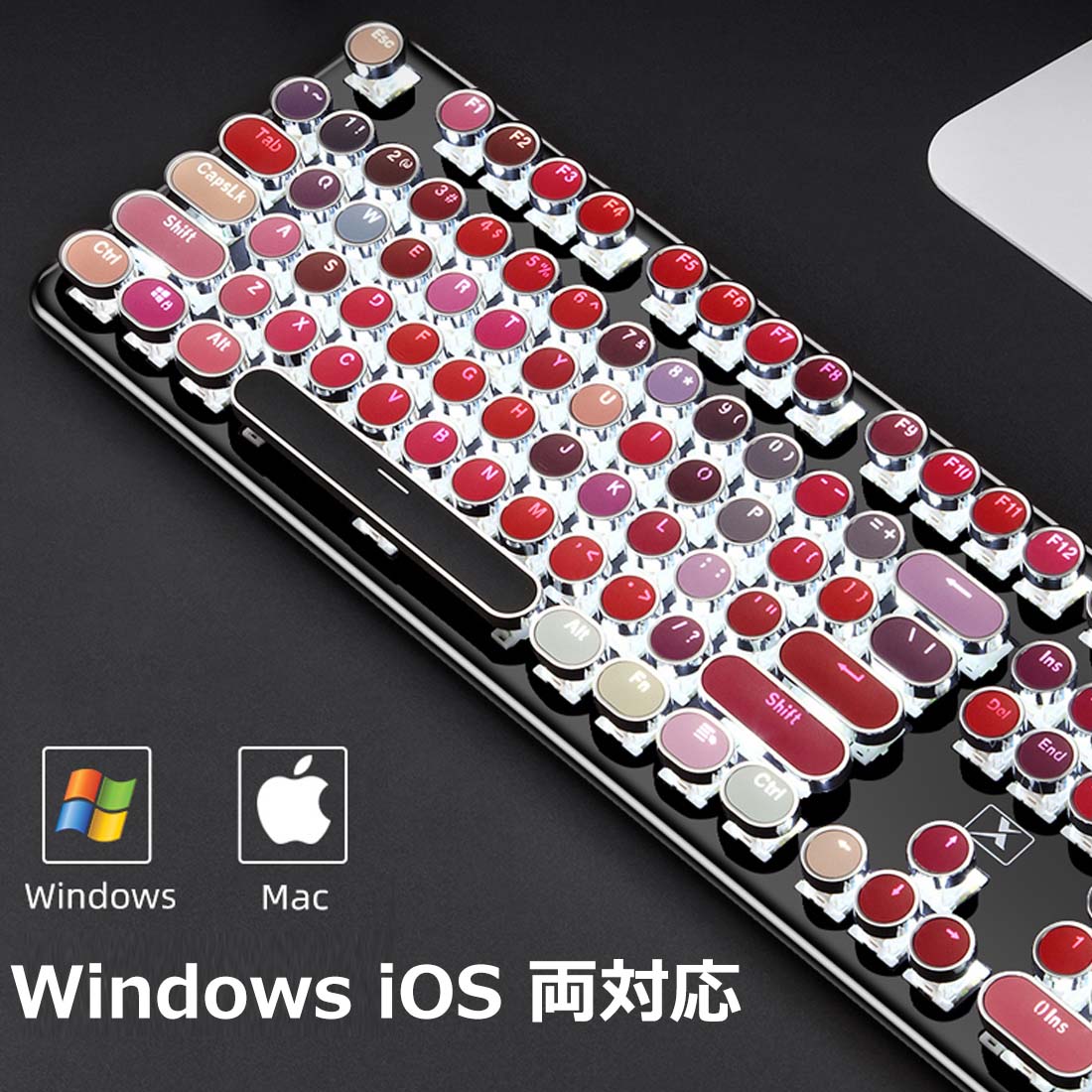メカニカルキーボード【1位入賞】おしゃれ ゲーミング タイピング USB メイクパレット レトロ 打ち安い タイプライター LED 25パターン キーボード 青軸 バックライト 光る 口紅 かわいい 可愛い 女性 英語配列